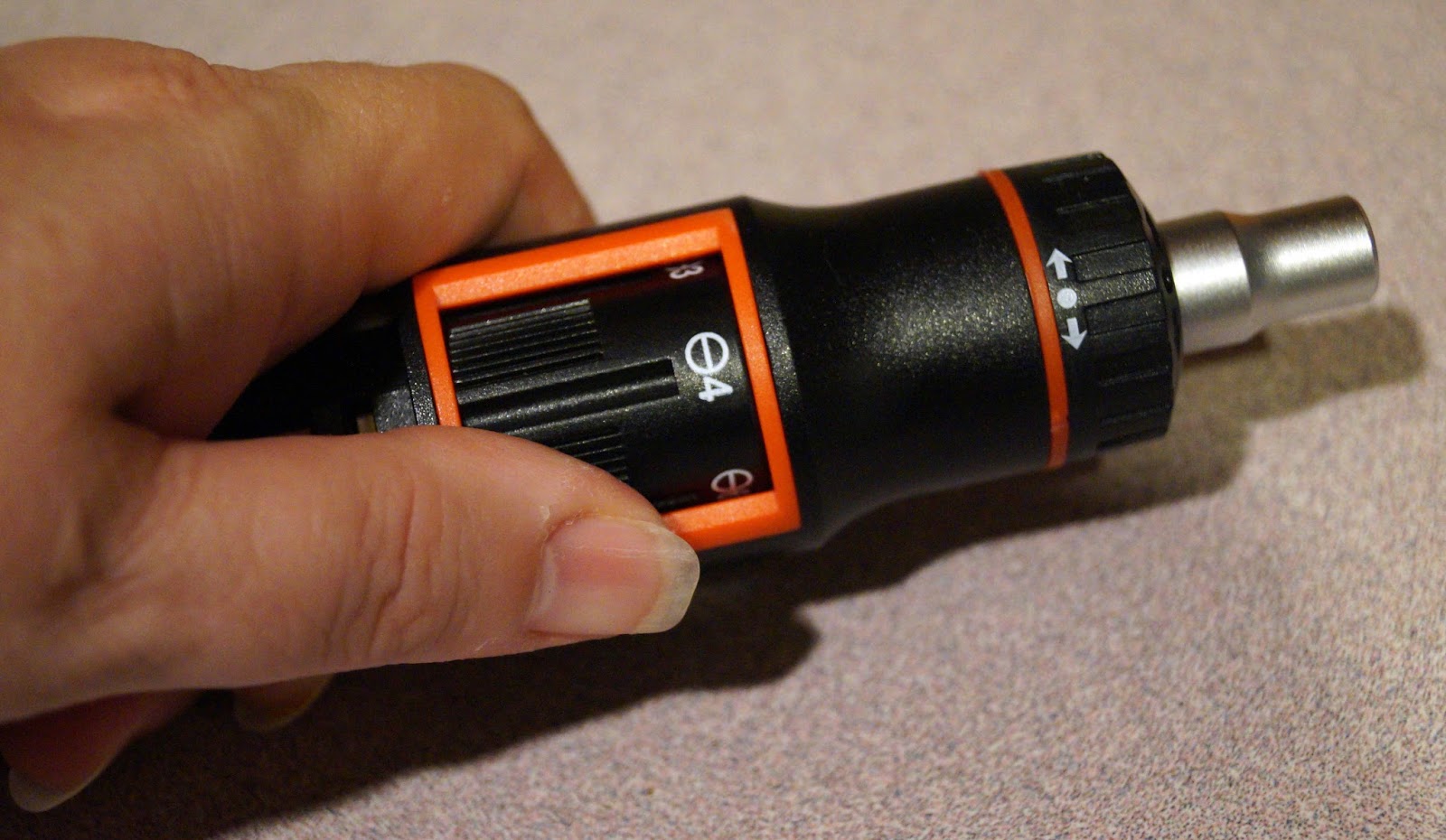 I love this screwdriver because it has all the different types you might need all in one convenient place. No digging for the right one. Just pull the handle and turn the dial to get the one you need!